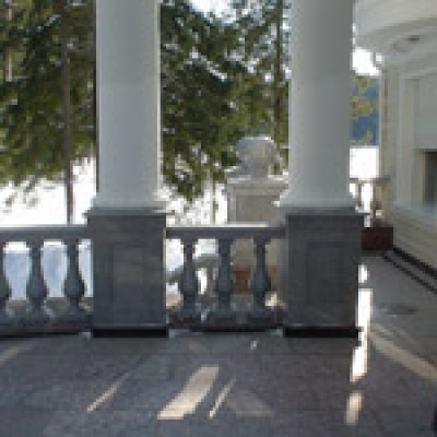 Поставка и монтаж изделий из светло серого гранита Роял Вайт. Объект сдан в 2006 г. Общий объем по облицовке гранитом - 200 м2.